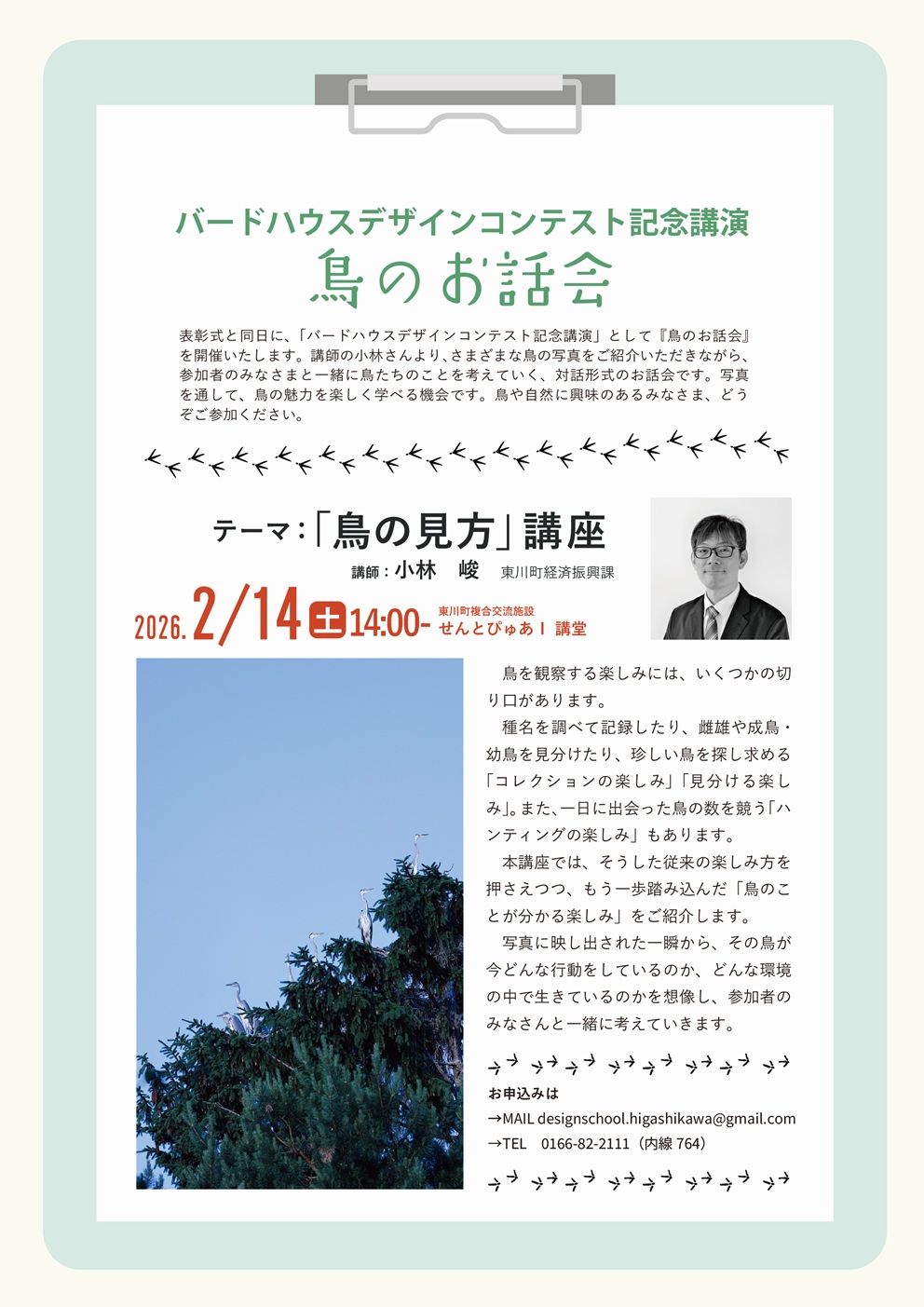 東川町バードハウスデザインコンテスト記念講演『「鳥の見方」講座』 開催