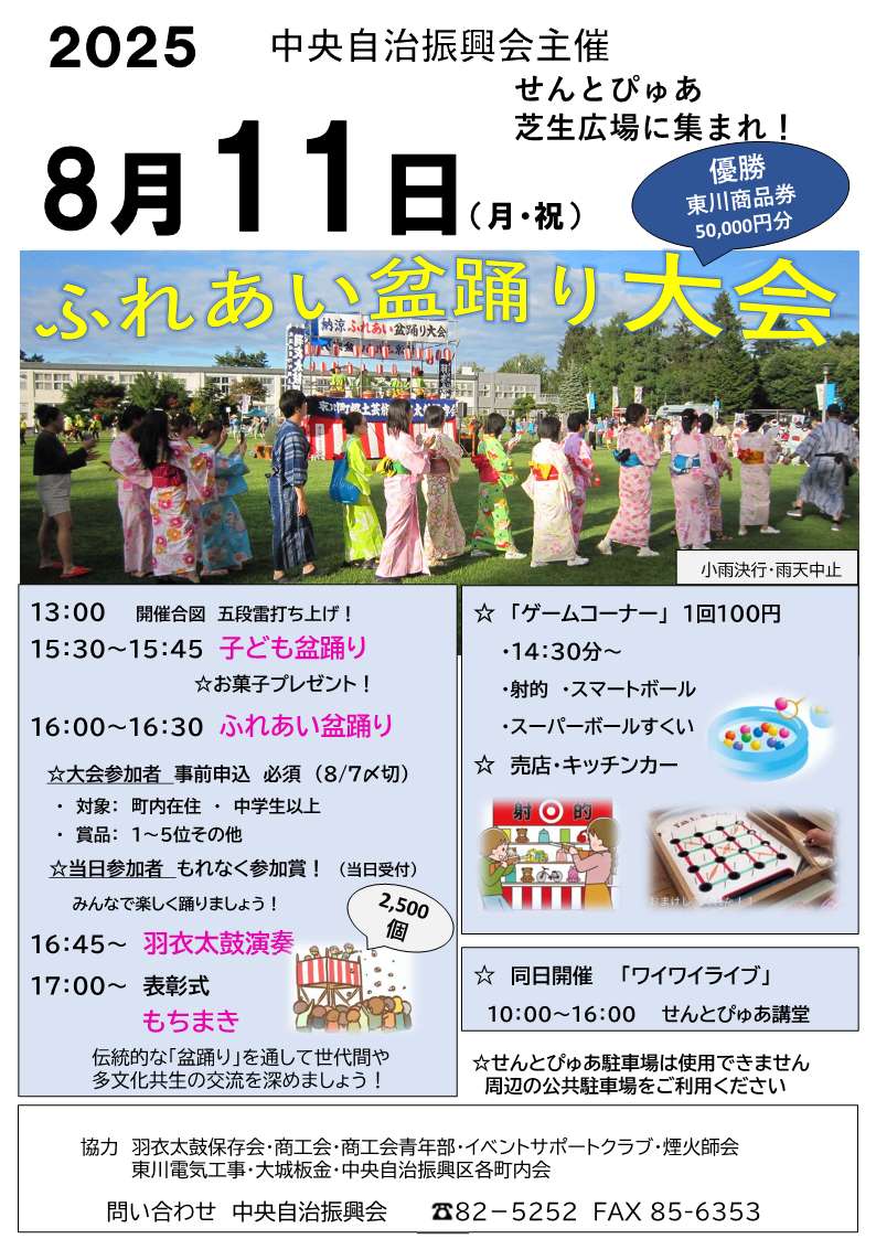 ・ふれあい盆踊り大会について:中央自治振興会 0166-82-5252