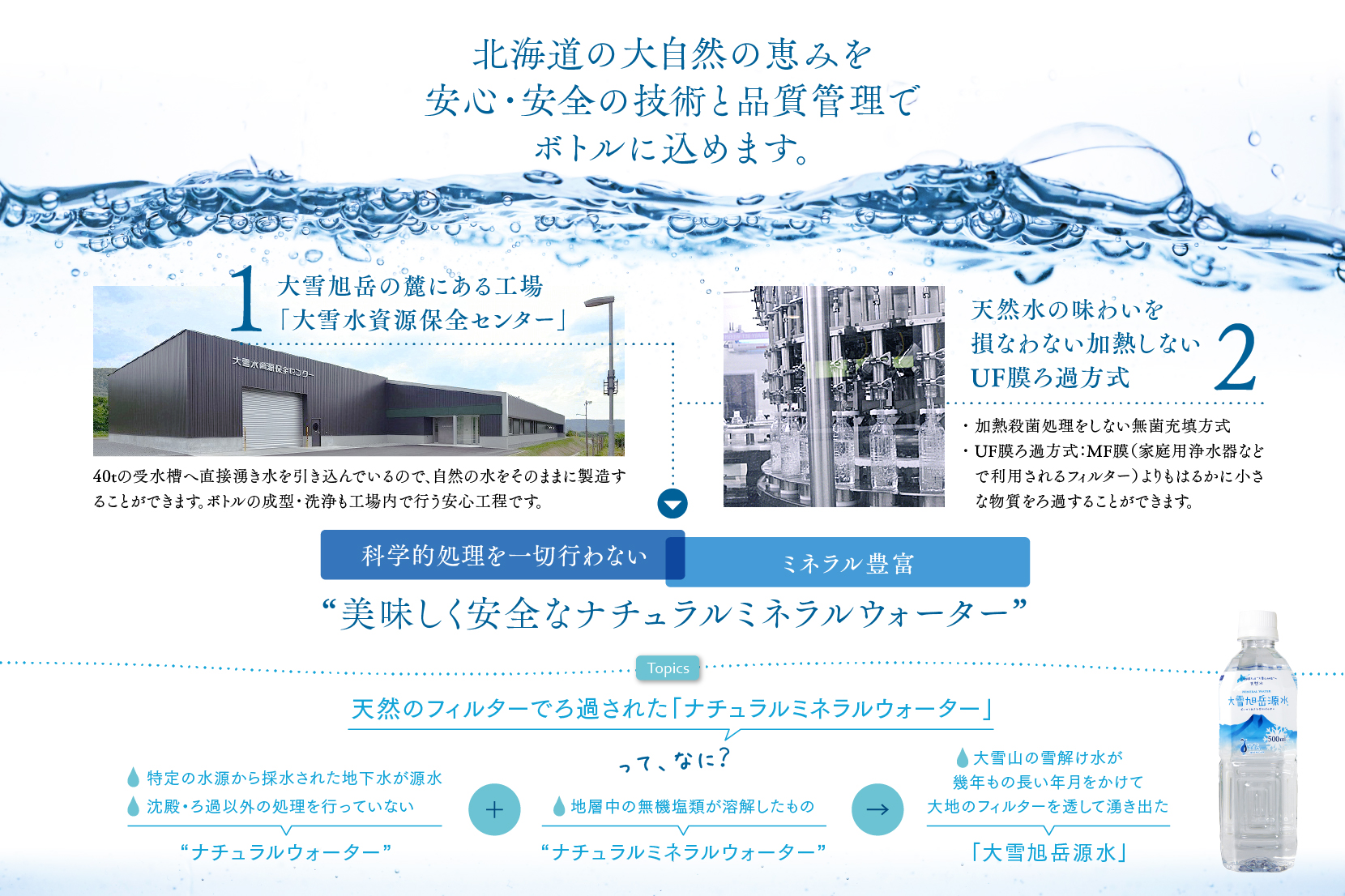 一切熱処理を加えていない、純粋の天然ミネラルウォーターです。