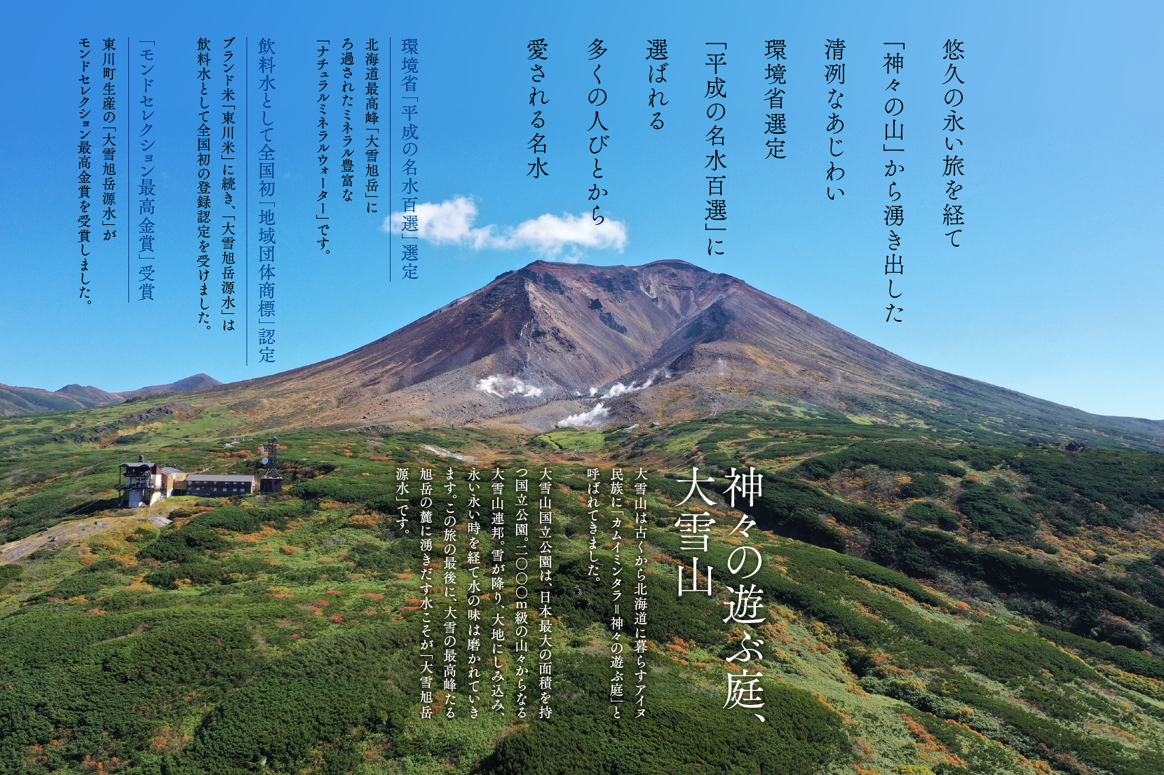 大雪山の雪解け水がゆっくりと時間をかけて流れてくる地下水を生活水とする、北海道で唯一上水道の無い町です。