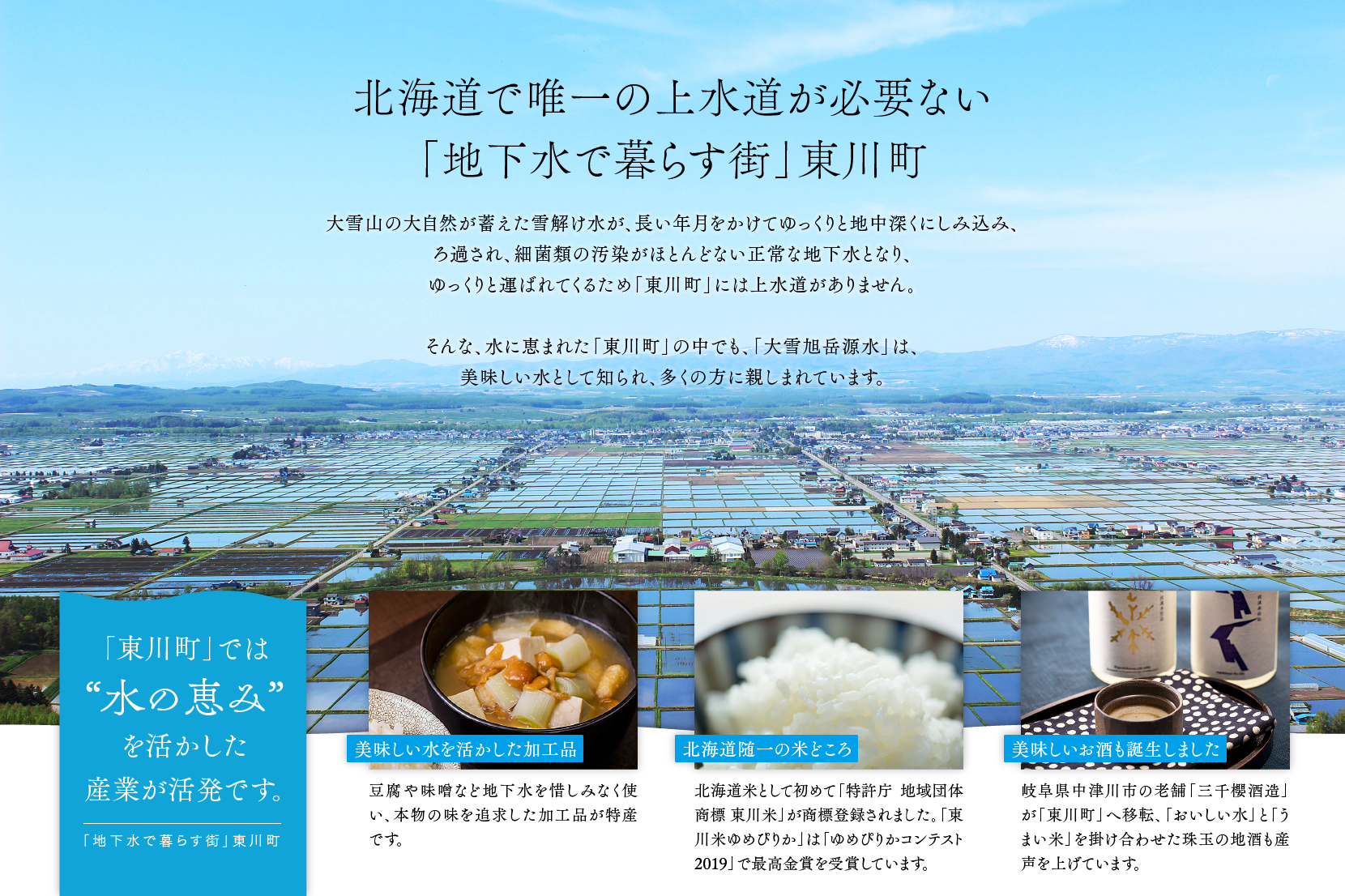 北海道上川盆地のほぼ中央に位置する北海道の米どころ「写真の町」東川町。