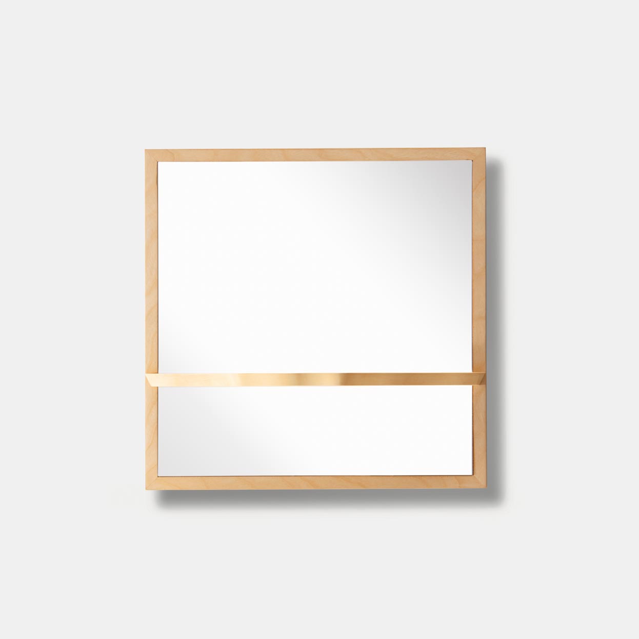 wakkaは、北海道の山並みをトレースした有機的な棚が、シンプルなミラーに映り込む機能的で個性的な壁面家具です。
