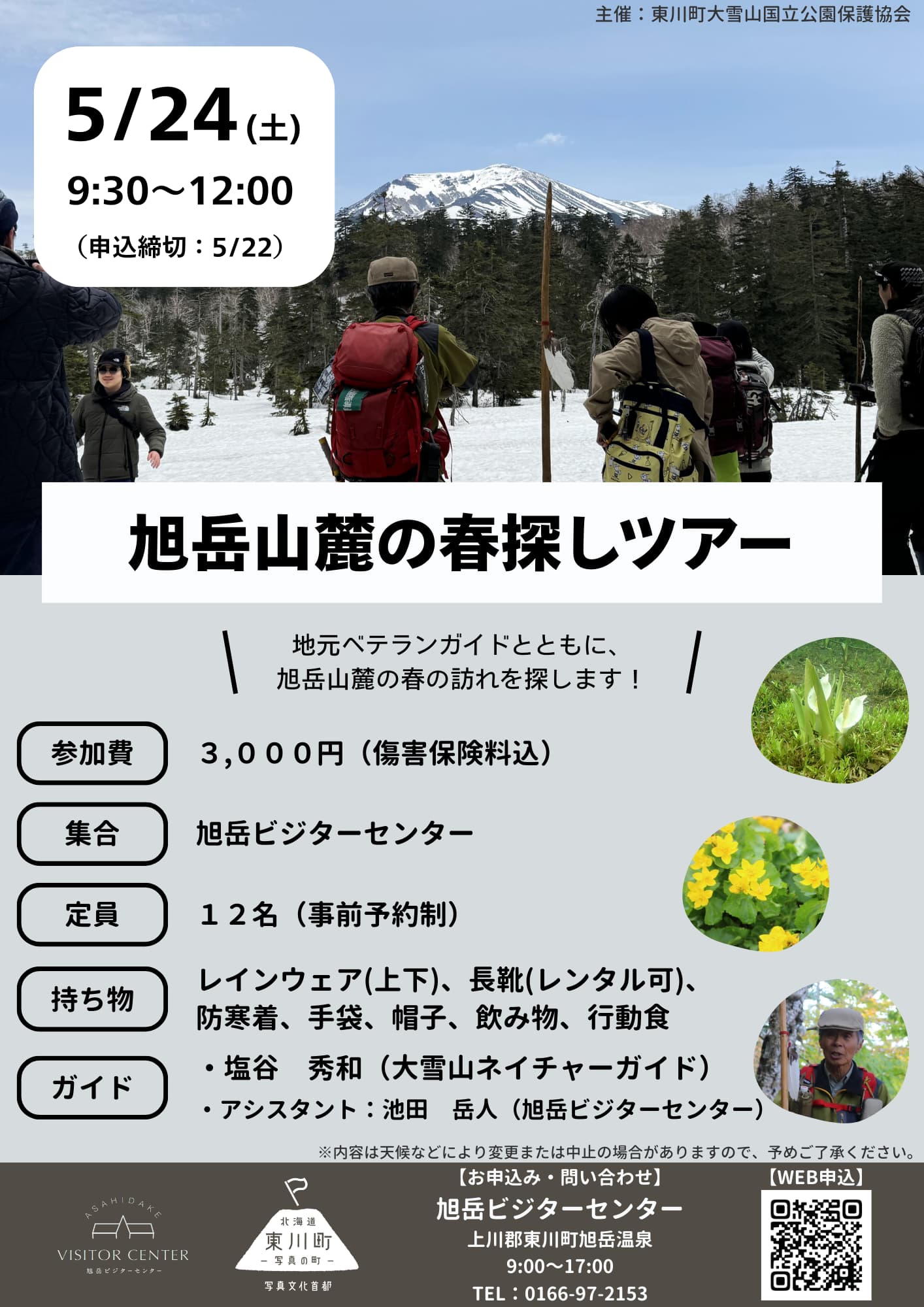 ベテランガイドならではの視点による自然解説とともに、旭岳の春を楽しみましょう。
