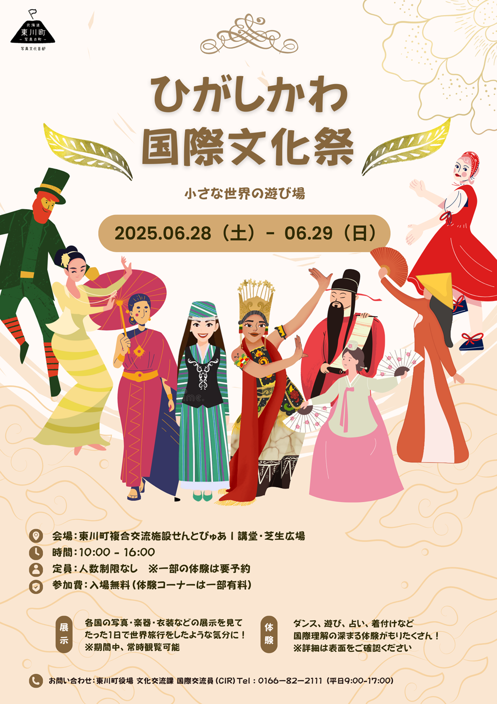 各国の文化を体験できるイベント『ひがしかわ国際文化祭2025』 を6月28日(土)・29日(日)の2日間、せんとぴゅあⅠ講堂・芝生広場にて開催いたします。