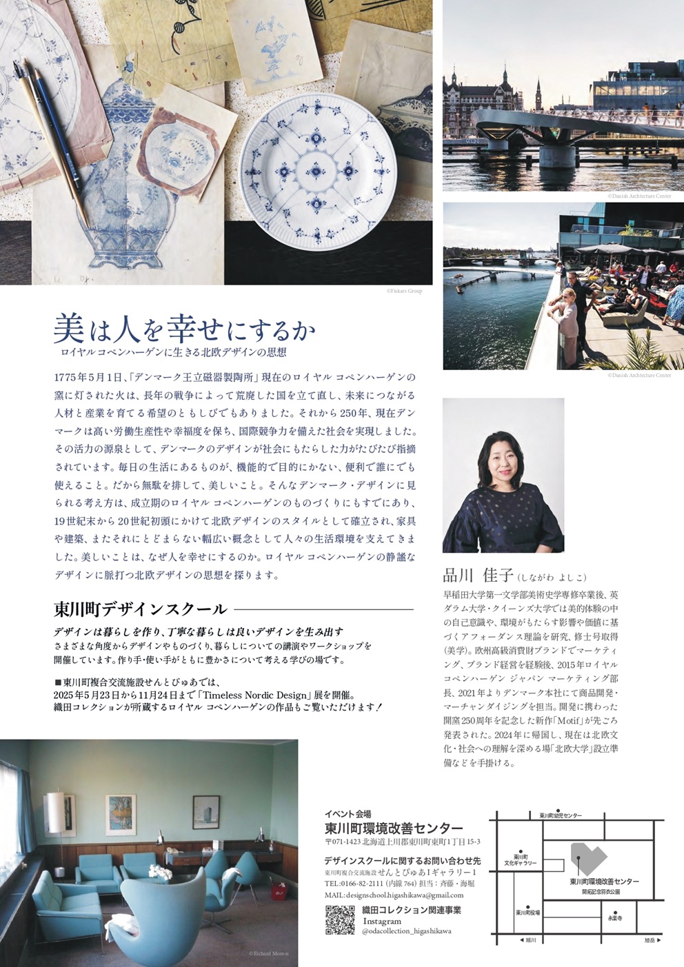 デンマーク本社にて商品開発・マーチャンダイジングに携わった品川佳子氏に、ロイヤル コペンハーゲンに脈打つ北欧デザインの思想について、「美しいことは、なぜ人を幸せにするのか」についてお話を伺います。どうぞご参加ください。