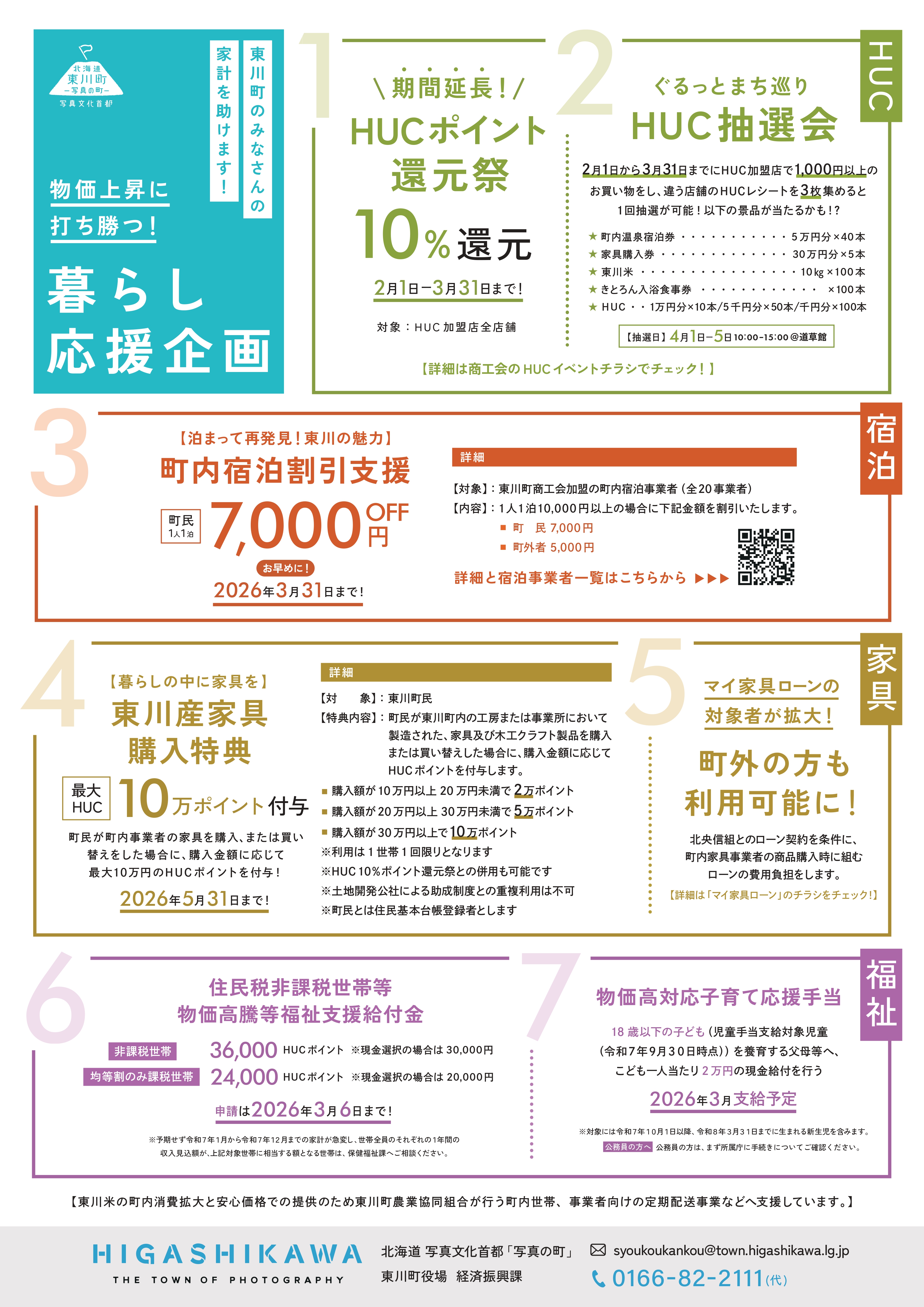 東川町では、物価上昇の影響を受ける町民の皆さまの生活を支援するとともに、町内経済の活性化を図るため、各種支援事業を実施します。