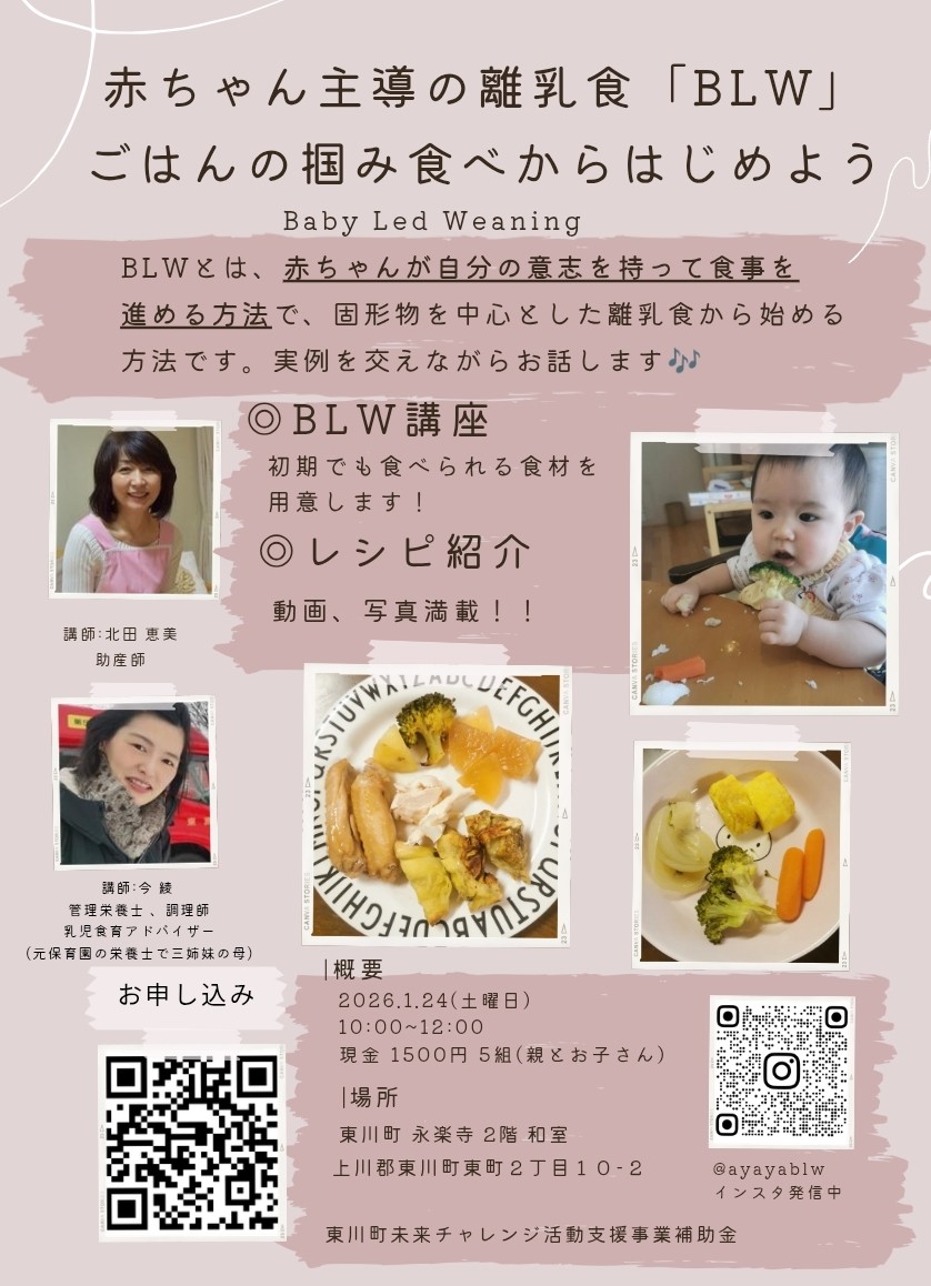 【東川町未来チャレンジ活動支援事業】イベント実施のお知らせ(1月24日(土)赤ちゃん主導の離乳食「BLW」ごはんの掴み食べからはじめよう)