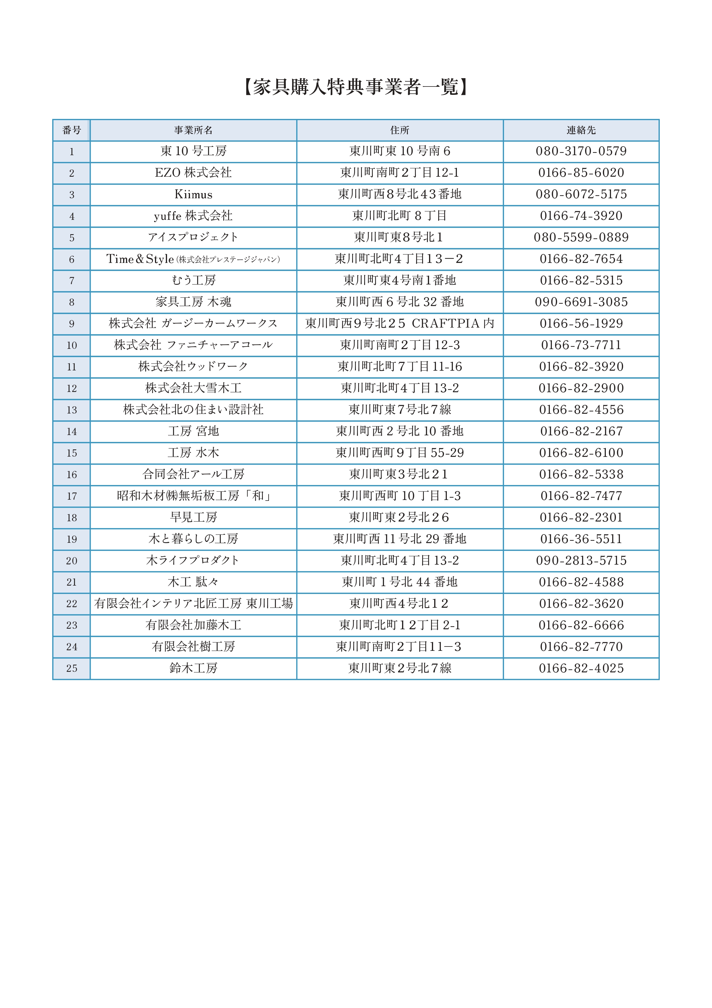 【内 容】「暮らしの中に家具を」東川産家具購入特典