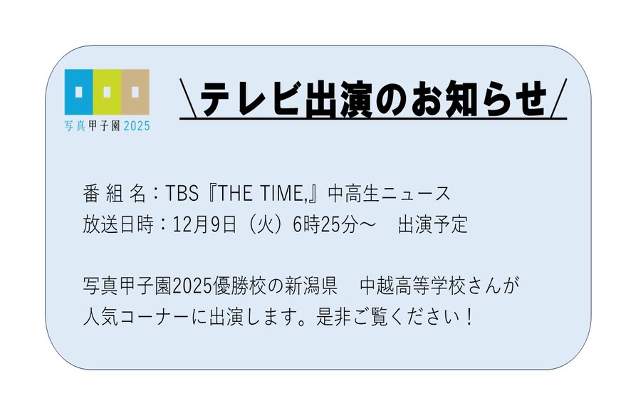 この度写真甲子園2025優勝校である中越高等学校が取材を受け、その様子が明日の朝放送されます!