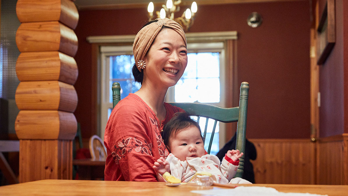 東川で暮らしてよかったのは水や景色のきれいさ。そして人との距離が近いこと。新たに始めた飲食店を支えてくれているのも地域の人でした。地域の皆が友達のような関係で、狭いコミュニティだからこそ、の子育てのしやすさがあると話します。
