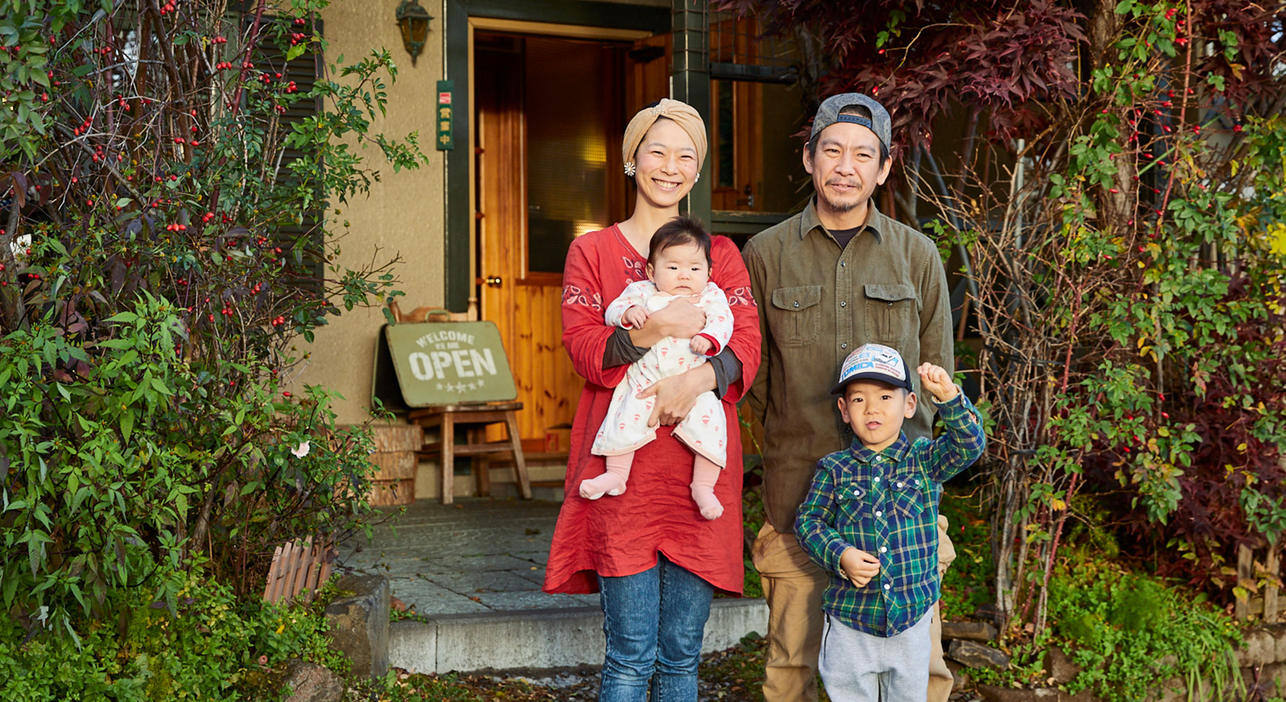 小さな子どもが2人いて、しかも自営業。目が回るほどの忙しさなのではないかと思いきや「東川では時間がゆっくり流れている気がするんです」と奈央さんは言います。「幼児センターに子どもを迎えに行く時に旭岳の姿がぽっと見えたり、稲が色づいているのを見たり。そういう時間で息がつけるんです」。東川で暮らしていると道で子どもに会うことも多く「本当に世の中少子化?」と思うそう。関さん一家にも家族が増えたばかりです。「子育てはしやすいと思います」と言いますが、それは制度の面だけではなさそうです。「親も子どもも、地域の人がみんな友達っていう感じなんです。子どもたちの服は上の子の分もぜんぶおさがりです」。狭いコミュニティならではの良さと笑います。眞宏さんは年齢の近い人が多く、「BBQやってるから来いよ!」と声をかけ合うような、いわゆるパパ友ではない友達もいるそう。大人も子どもも孤立することのないコミュニティが出来上がっています。東川で暮らしてよかったことを奈央さんに聞くと「水がおいしい、景色がいい、人との距離が近い」と即答。そのすべてに幸せをかみしめながら暮らしています。