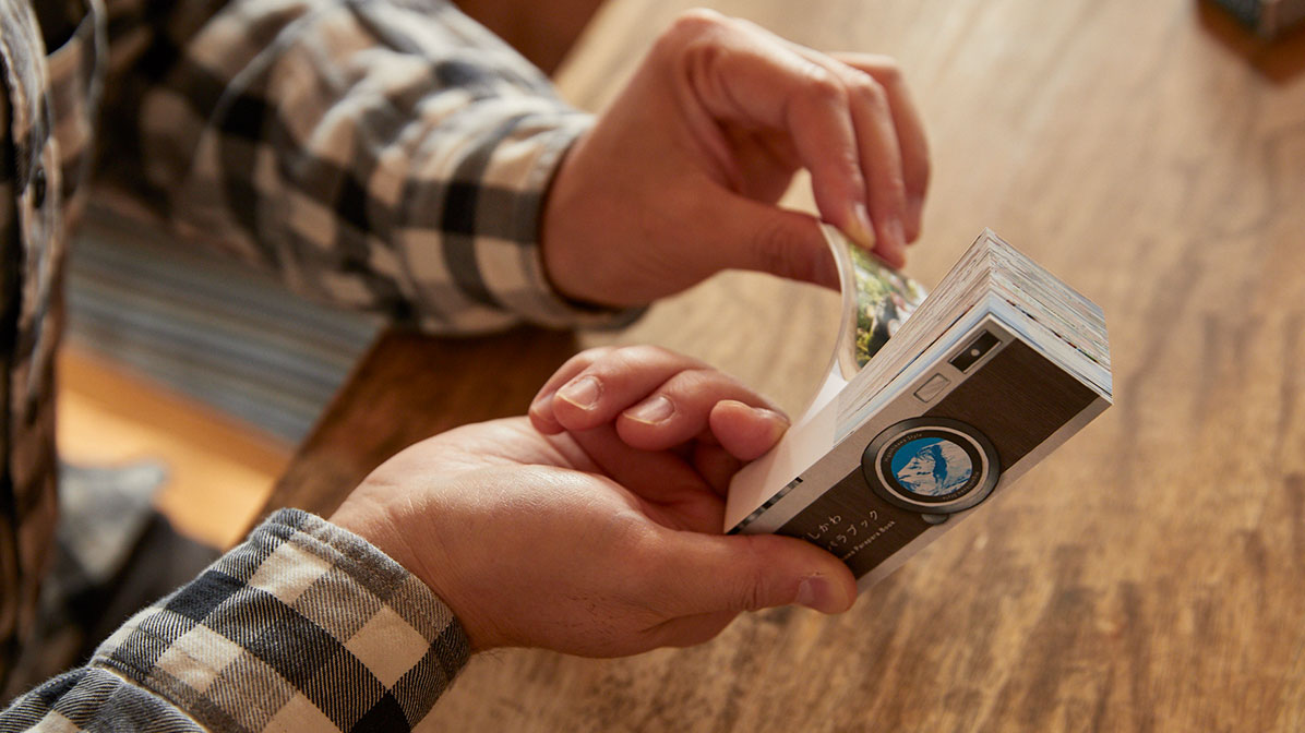 「そうきたか!」と思うような仕掛けが楽しい「パラパラまんが」を作る杉野さん夫婦。以前は京都や滋賀県に住んでいましたが、息子さんが小学校に上がる前に故郷の北海道へ戻ることに。場所はお互いの実家の中間地点となる旭川周辺でと考えていましたが、コーヒー好きで町内のカフェによく来ていた理奈さんのお父さんが東川町をすすめてくれました。当時杉野さん夫婦は東川のことは知りませんでしたが、実際に遊びに来てみると木工をはじめとする作家さんが大勢暮らしていることから自分たちも町になじみやすいのではと興味を持ったそう。ふるさと納税の返礼品として送られてきた本「東川スタイル」を読んでからは移住にはずみがつき、結局東川町以外は検討せずに移住を決めました。