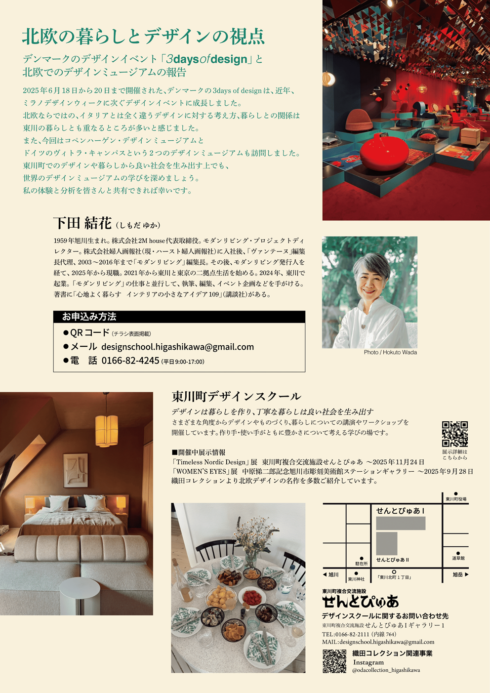 北欧ならではのデザインに対する考え方、暮らしとの関係は、東川の暮らしとも重なるところもたくさん!デザインや暮らしから、良い社会を生み出すためにも大切な世界のミュージアムのお話を伺います。