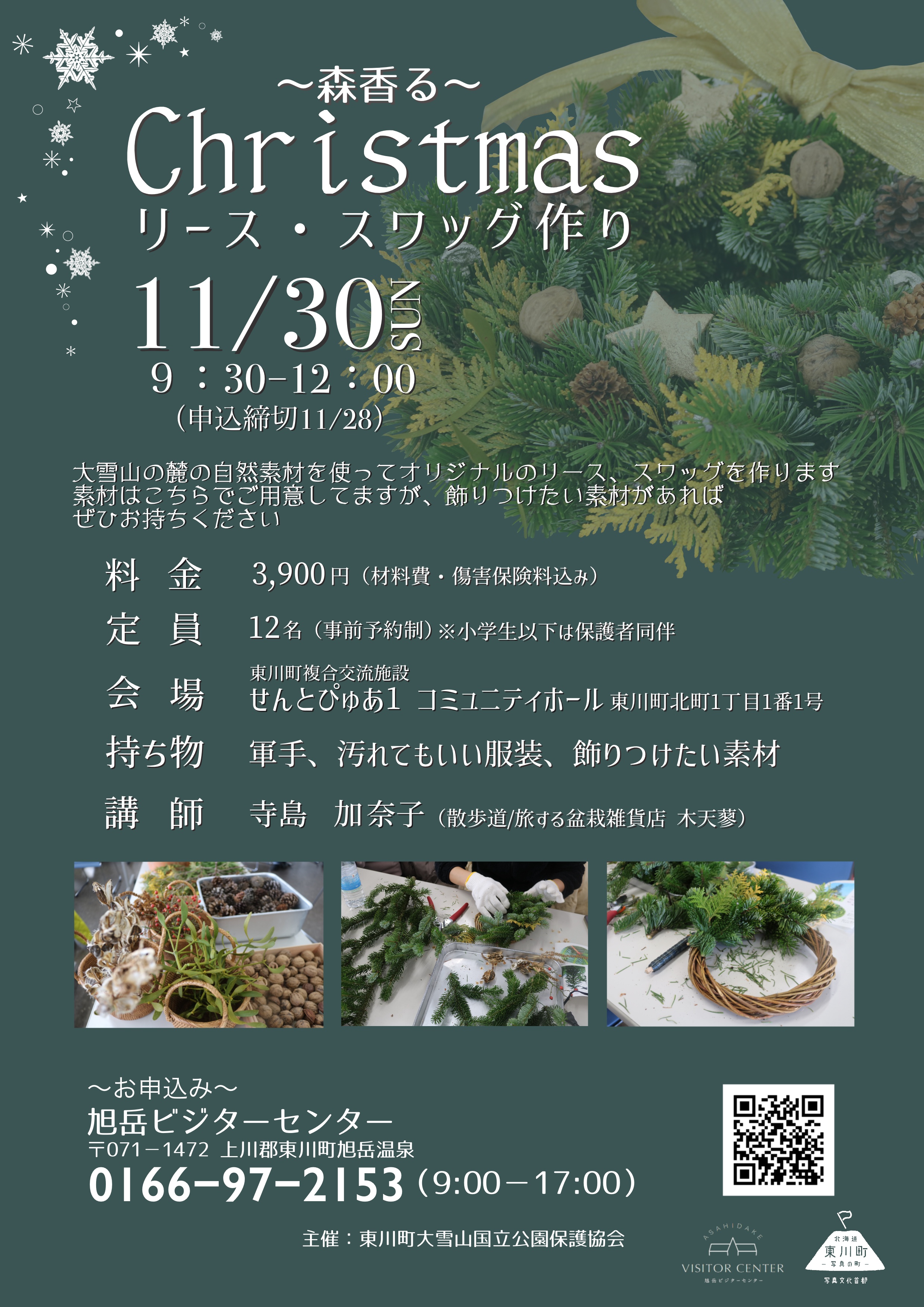 森香るクリスマスリース・スワッグ作り(旭岳ビジターセンター)
