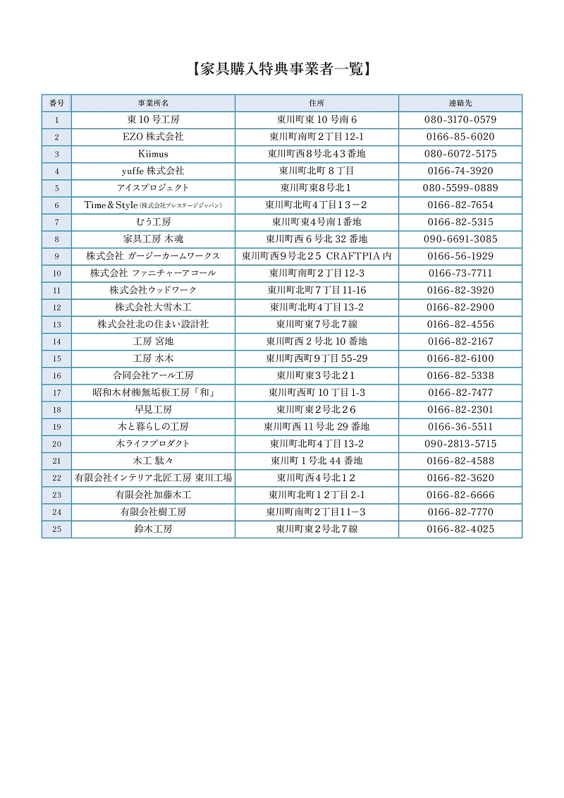 【内 容】「暮らしの中に家具を」東川産家具購入特典