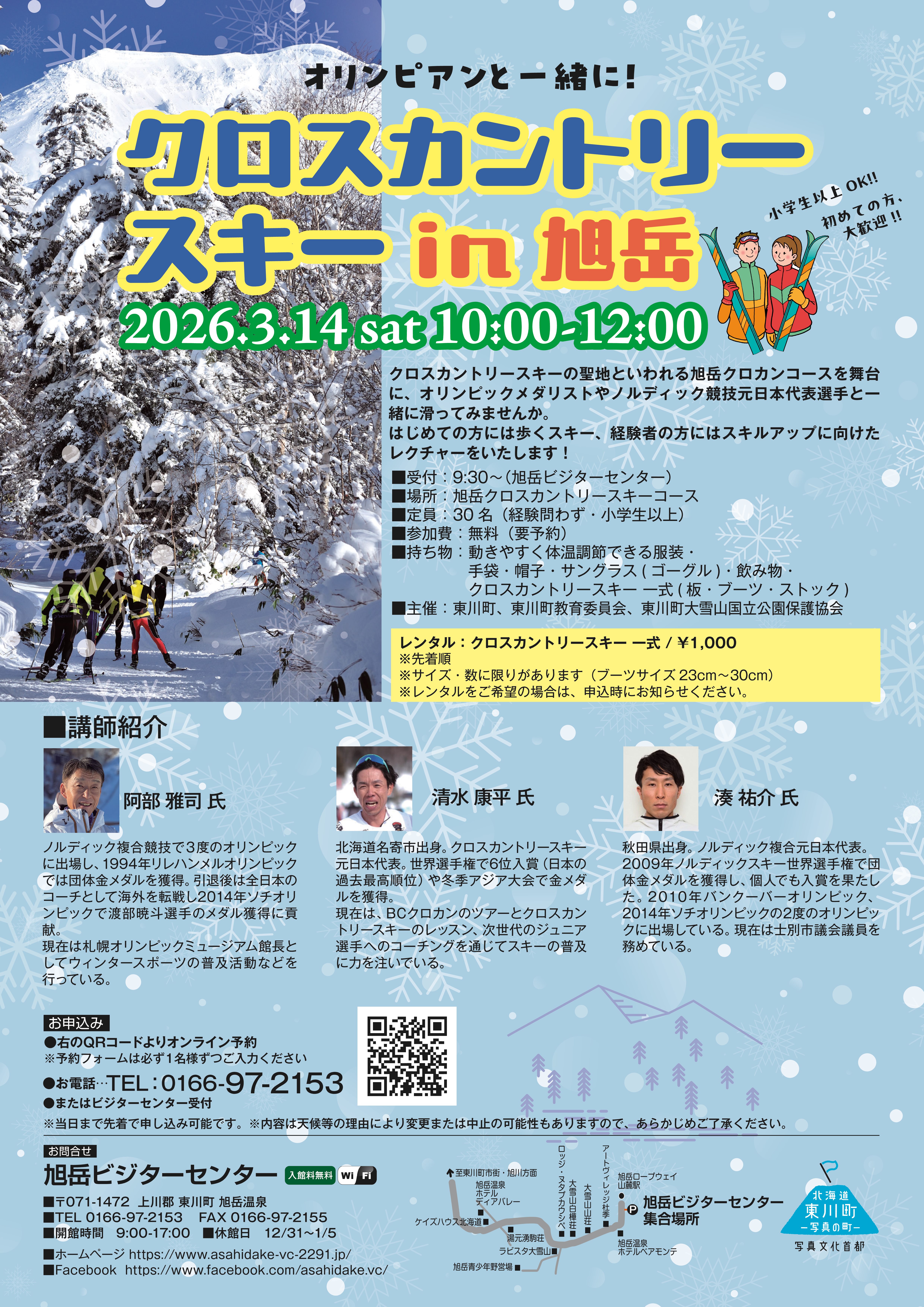 そんな「クロスカントリースキーの聖地」である旭岳温泉を舞台に、ノルディック競技のオリンピアンや元日本代表選手と一緒にクロスカントリースキーをしてみませんか。