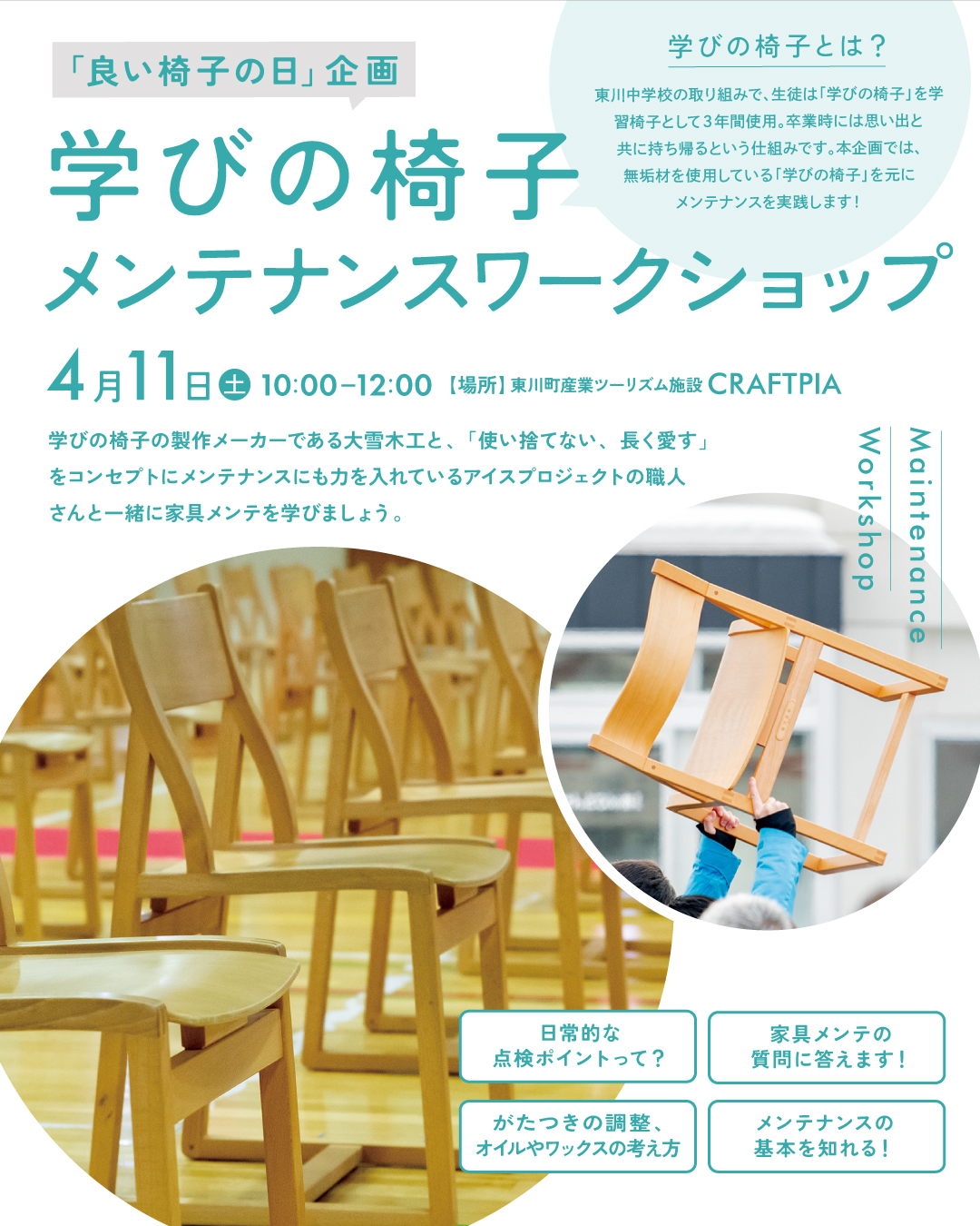 4月11日(土)学びの椅子メンテナンスワークショップのお知らせ