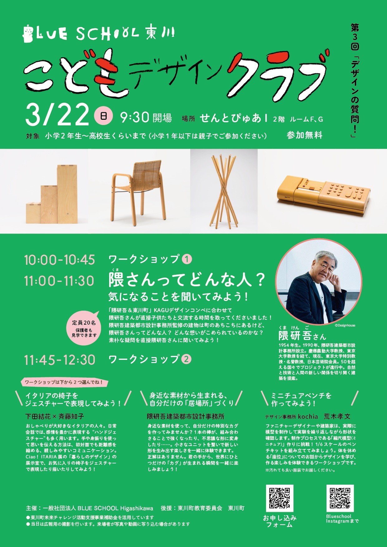 【参加費】 :無料 ※こどもデザインクラブは入会費無料で木製会員証がもらえます