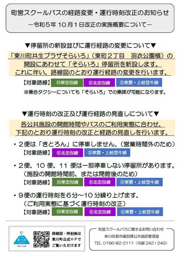 【令和5年10月1日実施】町営スクールバスの経路変更・時刻改正のお知らせ